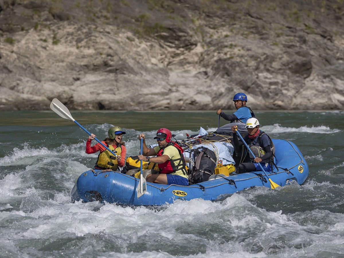 Expect a mix of fast currents, big waves, strong hydraulics, and technical maneuvers that require precise coordination between you and your team. Professional guides lead from the front, providing commands and support to keep the raft stable and paddlers safe. Despite the difficulty, the gorge is equally scenic, with towering cliffs, lush vegetation, and the sound of rushing water amplifying the raw beauty of the Karnali River.